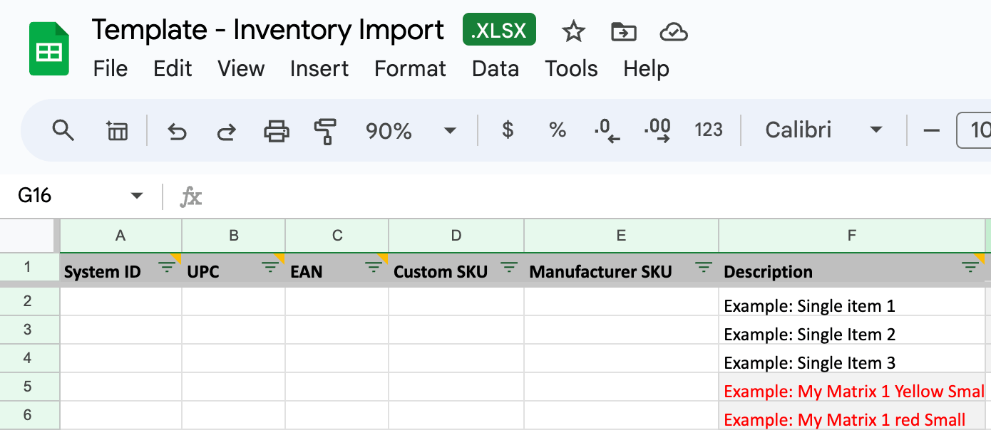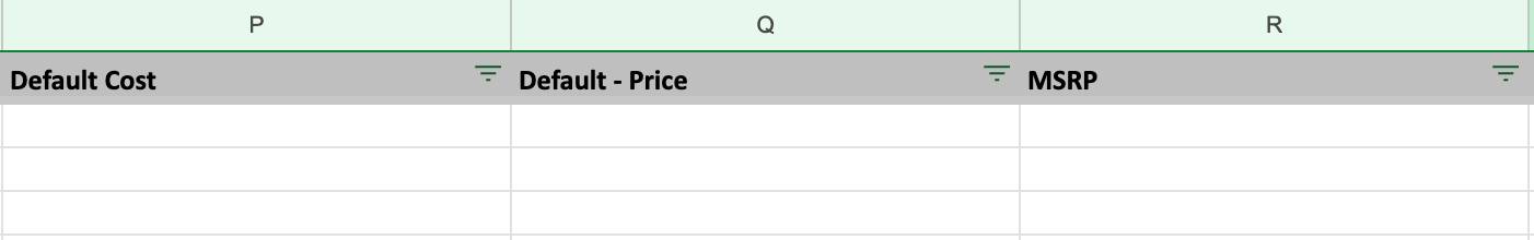 - Confirm blank cells are intentional, as some columns may use a default value if left blank or deleted. Blank cells will not delete inventory data for existing items, you will need to add new content to the cell to update.