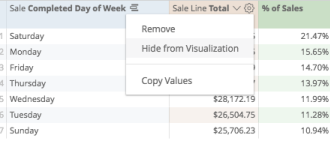 This way, you can focus specifically on the numbers that you wish to measure. You will get an "eye" icon on columns that are hidden from visualization.
