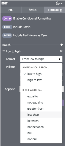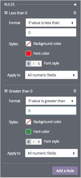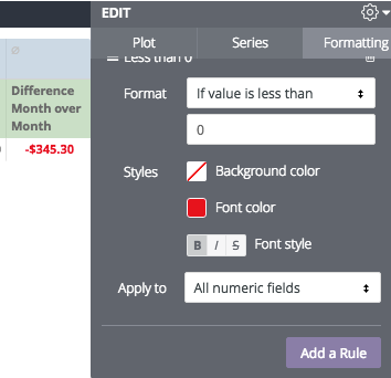 Now you can set the visual rules. In this case, if the change is less than zero, make the font red and bold.