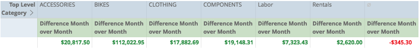 If we're using a table to compare last month to this month, for example, we can use Conditional Formatting to respond to numeric values, say to highlight negative and positive change...