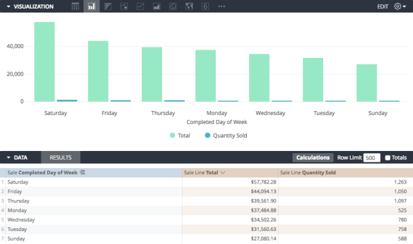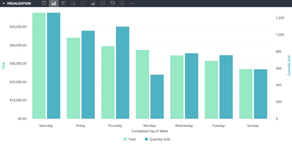 For example, I may have sold 1000 products on Saturday for a total of $50,000, but if I measure them on the same graph, I won't be able to read the Qty.