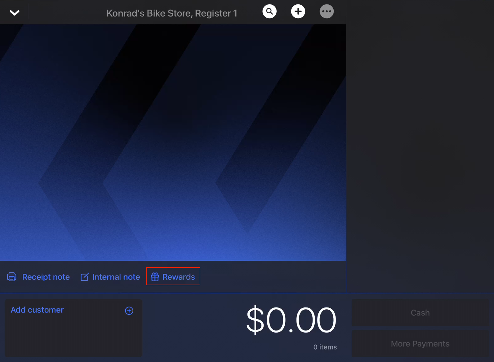 Vous pouvez appuyer à tout moment sur le bouton Récompenses à l’écran Ventes pour ouvrir la liste de récompenses Fidélisation.