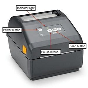 - Houd de knoppen Pause en Feed ingedrukt tot de statusindicator de enige brandende indicator is. Je Zebra ZD420- of ZD421-printer is nu gereed om verbinding met Hub te maken.