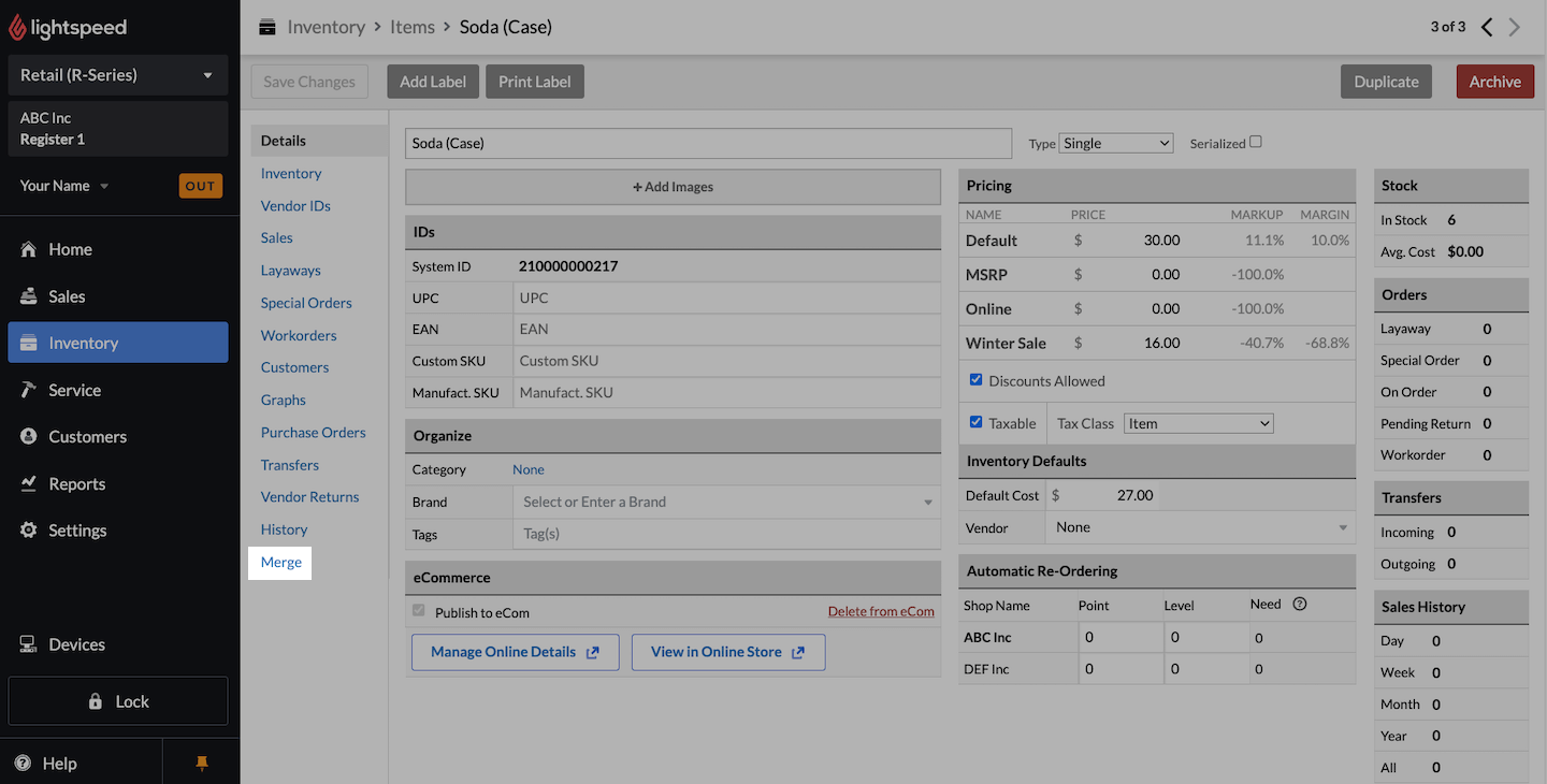 Items die horen bij de samengevoegde selectie worden nu gegroepeerd met het oorspronkelijke item dat je hebt geselecteerd. Een voorraadlogvermelding met een overzicht van voorraadwijzingen wordt toegevoegd aan de logs met samengevoegde items. De voorraadlogs voor het oorspronkelijke item worden ook toegevoegd aan de logs met samengevoegde items en worden aangegeven met Gearchiveerd. Je kunt het filter gebruiken om gearchiveerde vermeldingen weer te geven of te verbergen.