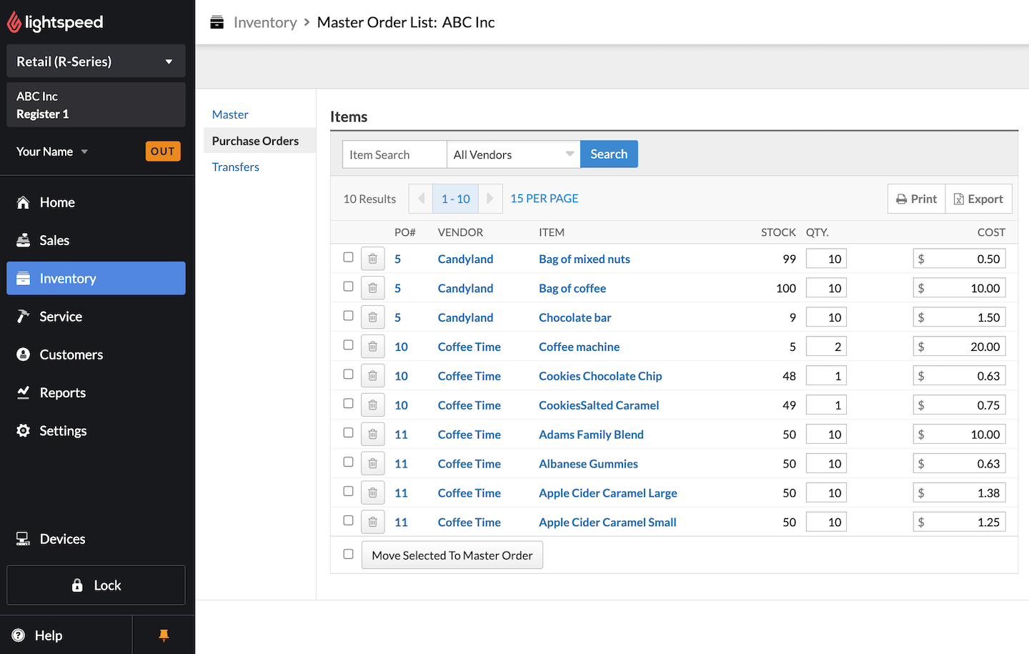 Met master-orders en transfers kun je inkooporders voor verschillende leveranciers en winkels vanaf één centrale plek beheren.